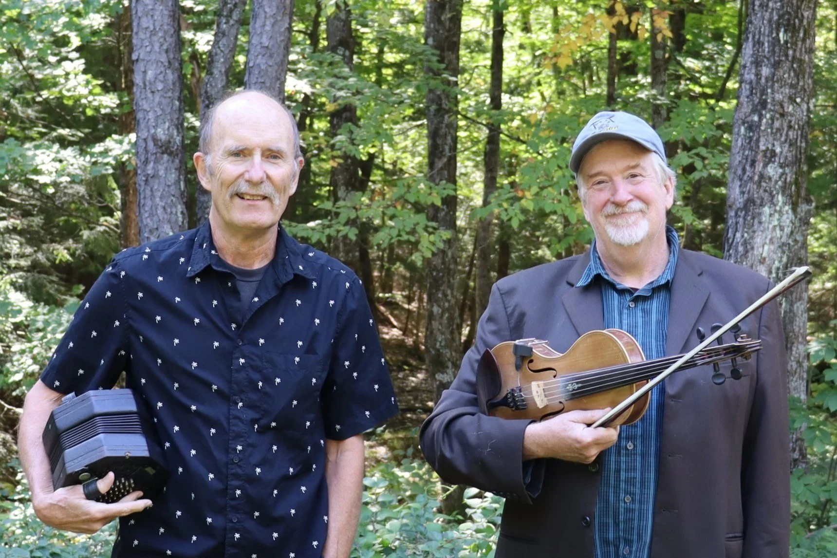 Ian Robb and James Stephens have only recently come together as a duo, but they are no strangers to each other’s music, having shared the stage countless times in such bands as Jiig, The Old Sod Band and the internationally-acclaimed vocal harmony trio Finest Kind. Both are long-serving veterans of the Canadian folk scene: Ian’s earliest folk influences were in the 1960s English folk clubs, before emigrating to Canada in 1970. He is well known as a singer of traditional folk songs, a “writer of old songs” and an accomplished player of the English concertina. James’s considerable notoriety stems from a four decade career as a multi-styled fiddler and multi-instrumentalist, recording engineer and producer of a “Who’s Who” of Canadian singer-songwriters and traditional and “World” musicians, not to mention his work as a much-respected teacher and influencer in the Canadian fiddle community.